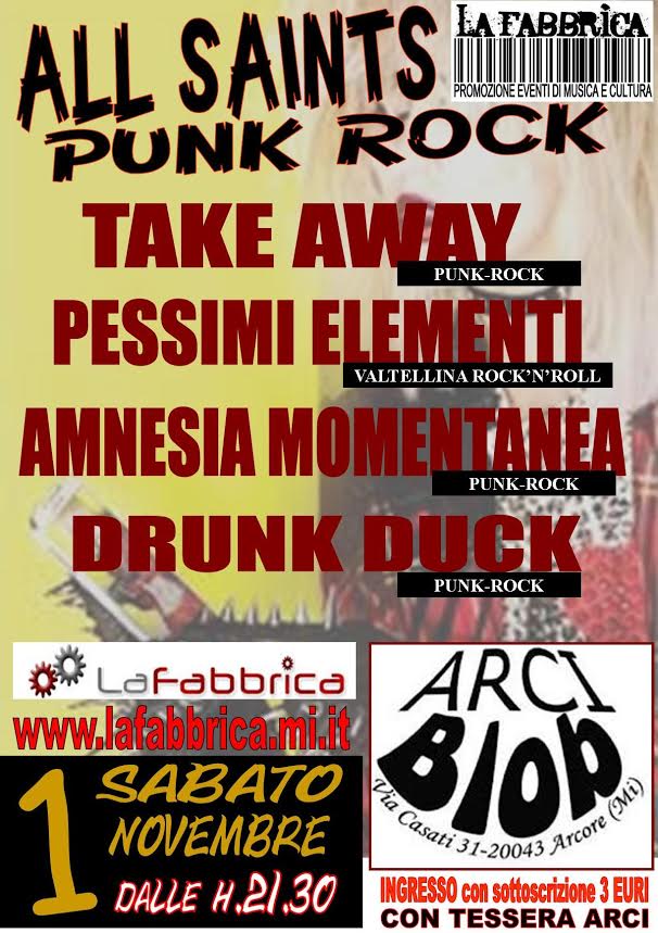 ALLA SAINTS PUNK ROCK BURDEL 1 NOVEMBRE Arci Blob Arcore