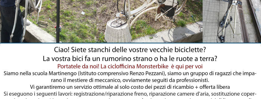 Tutti i giovedì dalle ore 12 alle 15.30 in via Martinengo è attiva la ciclofficina Martinengo, gestita da ragazzi di seconda e terza media….pronti a riparare le vostre biciclette al solo costo degli eventuali pezzi di ricambio + offerta libera