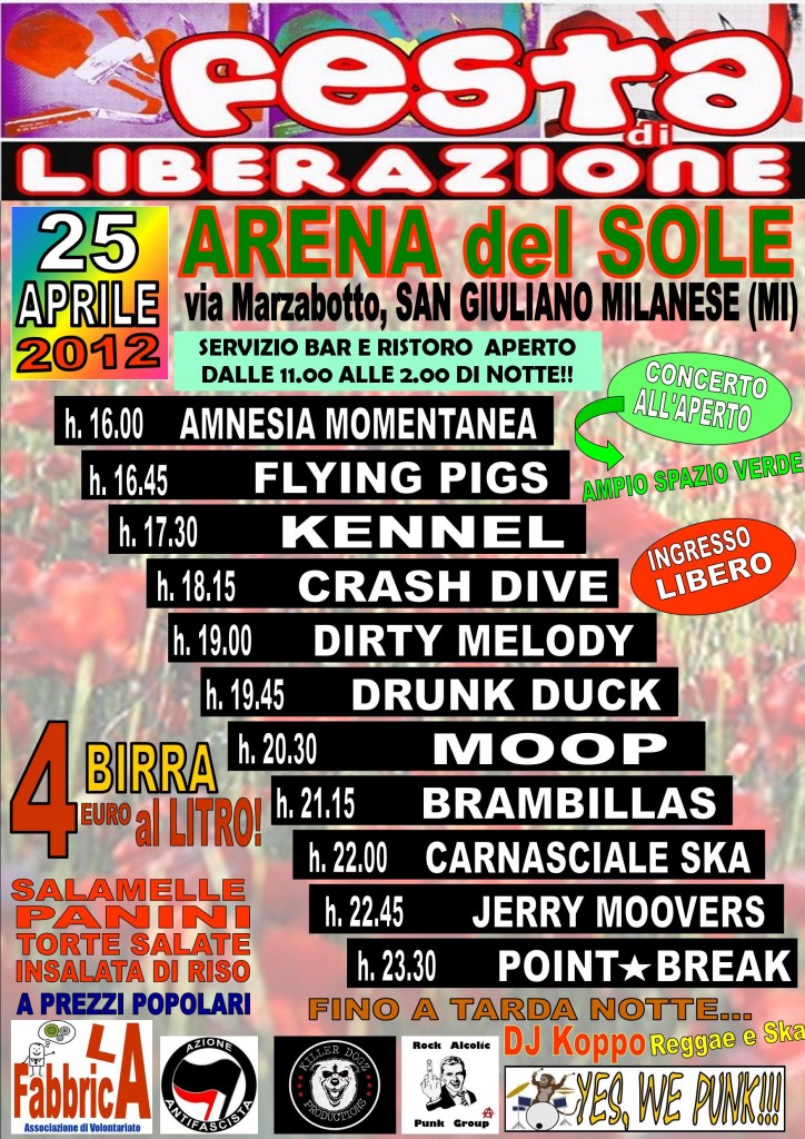 Festa 25 aprile: L’Associazione LaFabbrica, realtà storica del cremasco ed est milanese, assieme ad alcune etichette indipendenti (quali Yes, we Punk e KillerDogz) ha creato un 25 aprile del tutto particolare sia nei contenuti sia nei valori.